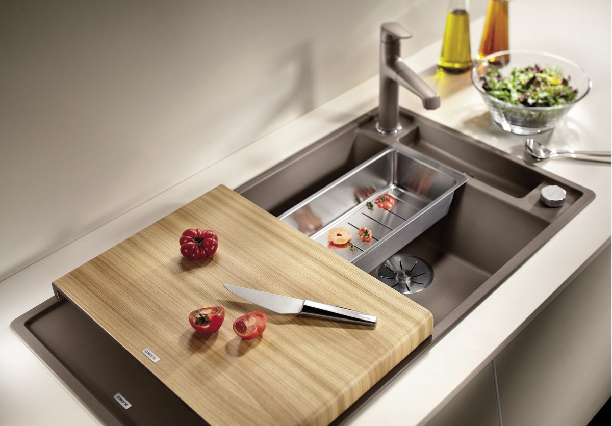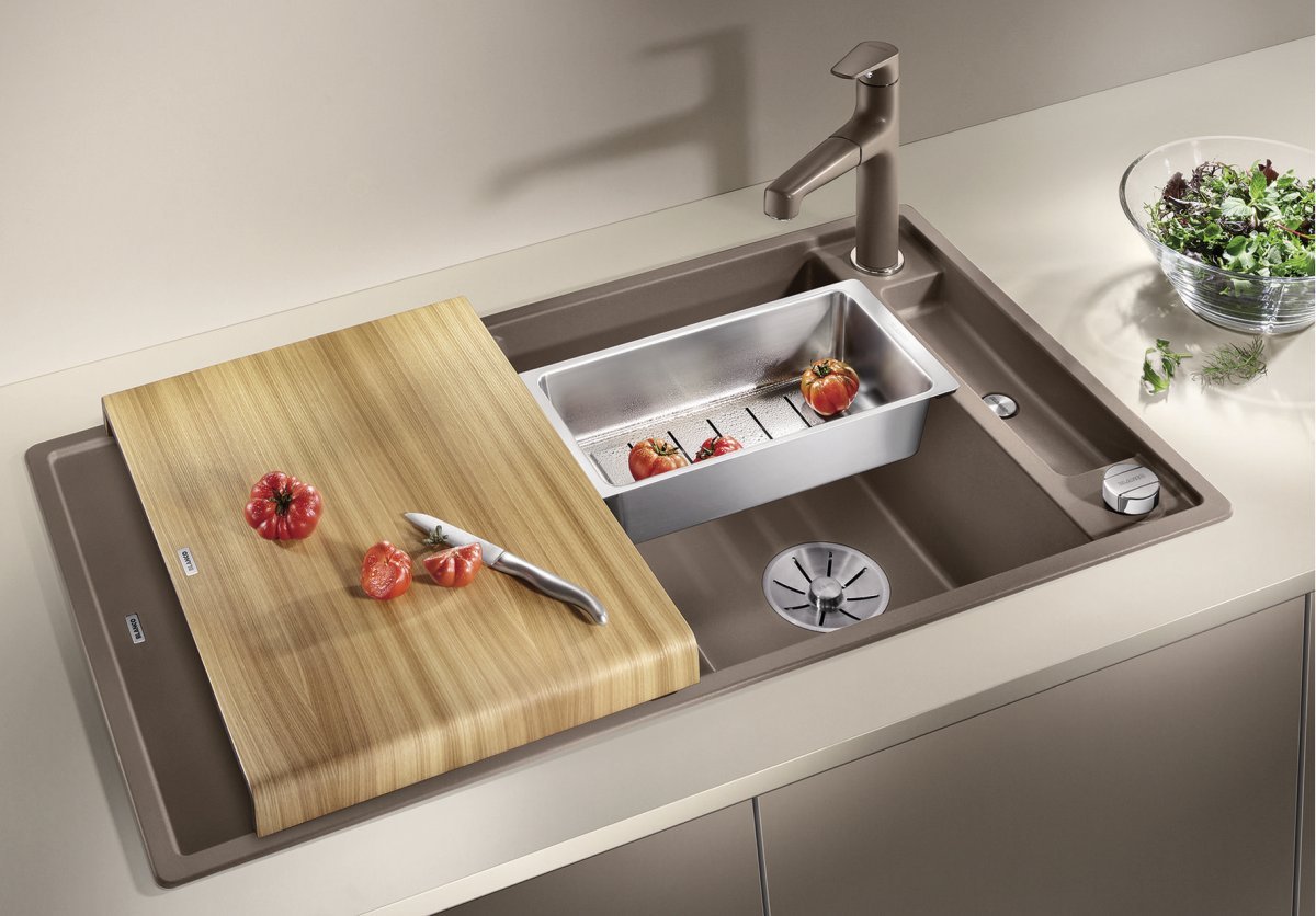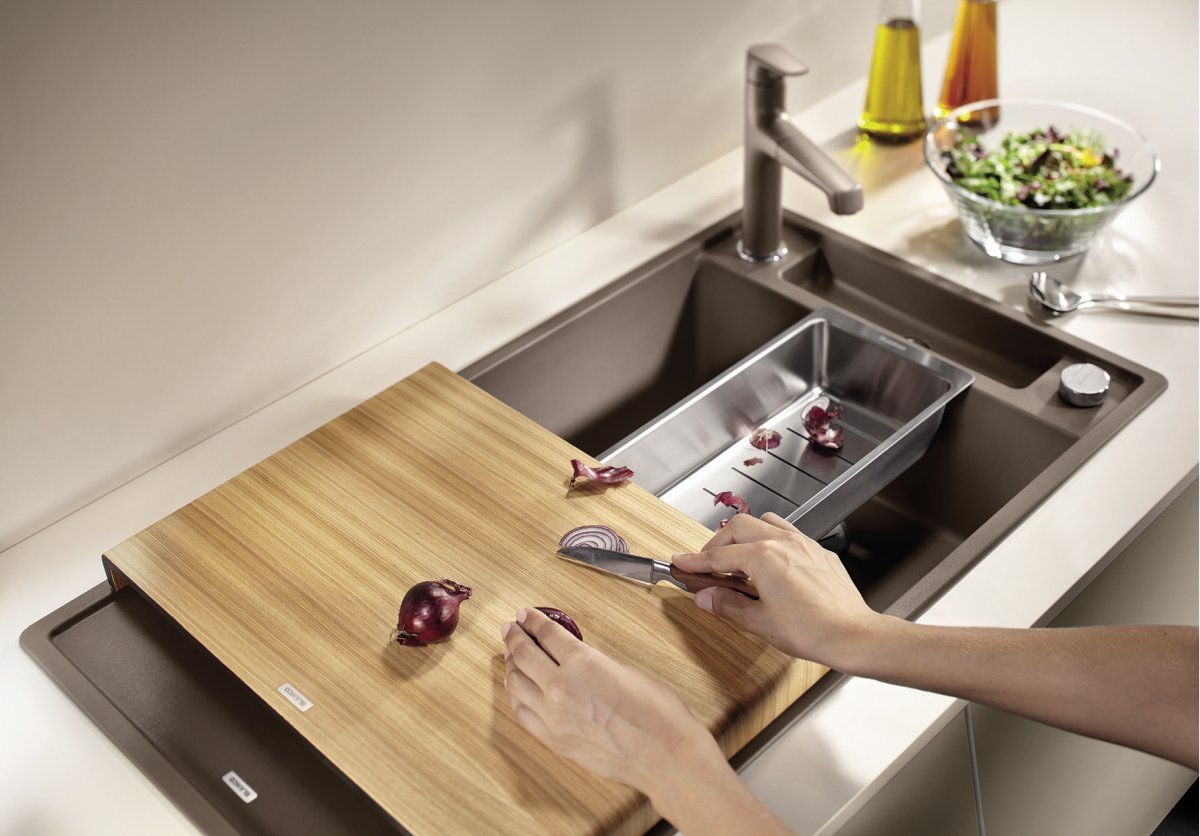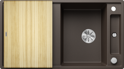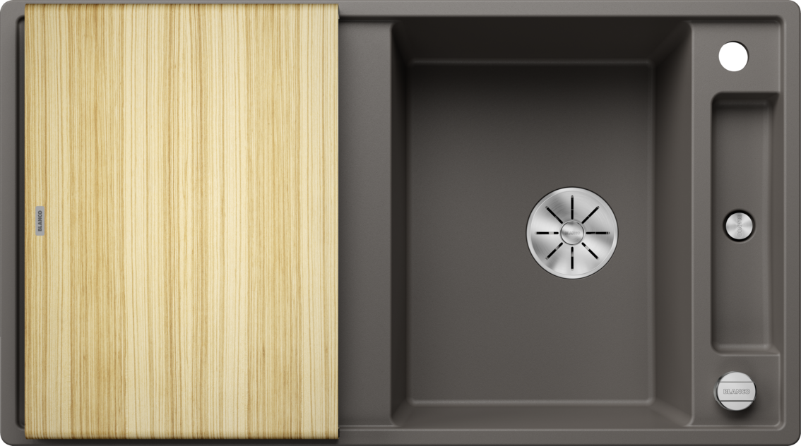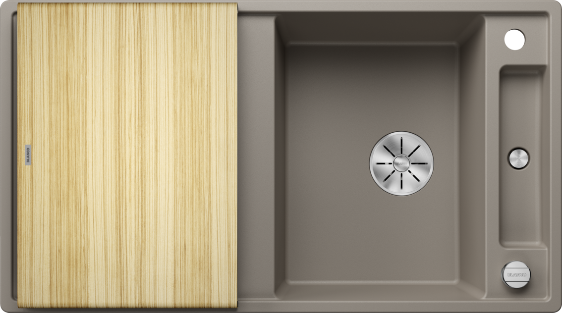 Blanco Axia III 5 S Granitový drez s drevenou doskou je praktický granitový drez do kuchyne s odkvapovou plochou, navrhnutý pre pohodlnú prípravu jedla aj bežné umývanie riadu. Vďaka premyslenej orientácii a príslušenstvu vytvára na pracovnej doske súvislú „pracovnú zónu“ okolo drezu. Hodí sa najmä do domácností, kde sa pri dreze často krája, oplachuje a pracuje so surovinami.