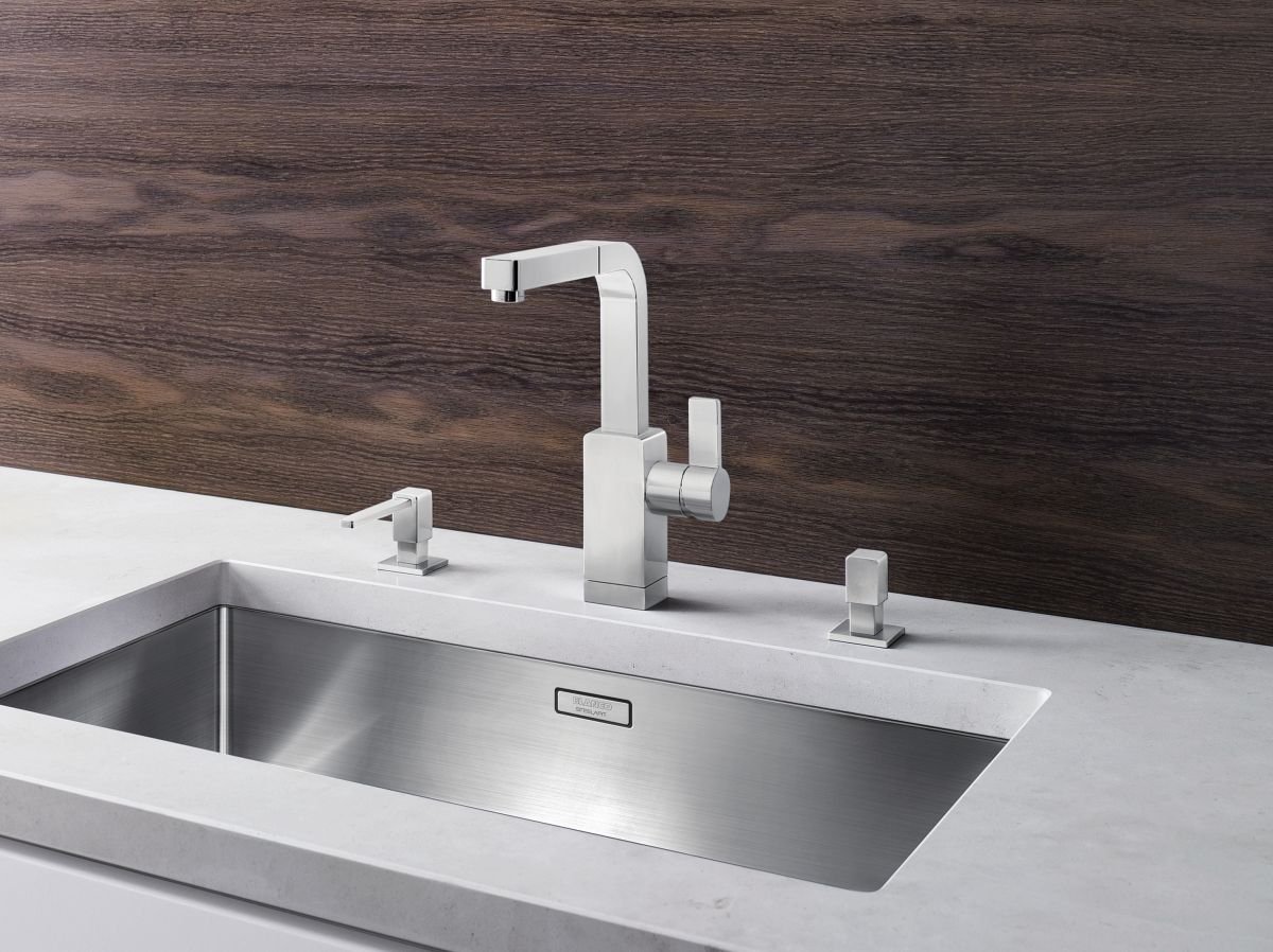 Model je bez excentrického ovládania, takže ovládanie výpuste sa rieši priamo na odtoku alebo voľbou kompatibilného príslušenstva. Pri výbere vhodnej batérie do kuchyne sa pri takejto veľkej vaničke osvedčí vyšší výtok alebo výsuvná sprška – získate lepší dosah pri oplachovaní rohov vaničky a pohodlnejšie napúšťanie vyšších nádob (kompatibilitu a montážne požiadavky vždy prispôsobte konkrétnej pracovnej doske a rozvodu vody).