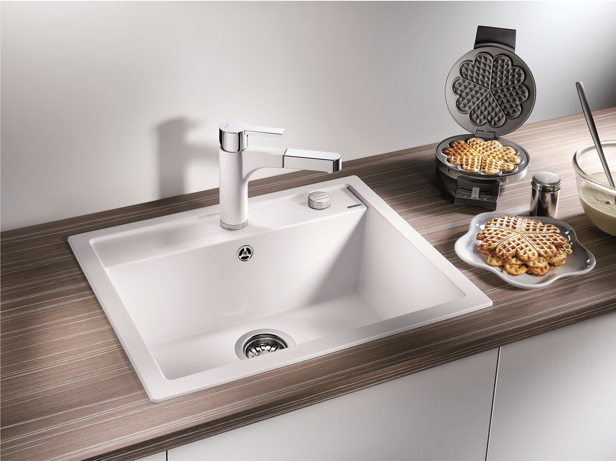 Tvar je riešený ako jednodrez s čistými líniami, bez odkvapu, takže pôsobí kompaktne a neruší pracovnú plochu. Dostupné farebné varianty (Čierna, Antracit, Biela, Biela soft, Káva, Sivá skala, Sivá vulkán, Tartufo) uľahčujú zladenie s pracovnou doskou, obkladom aj spotrebičmi – od kontrastných tmavých kuchýň až po svetlé minimalistické zostavy.