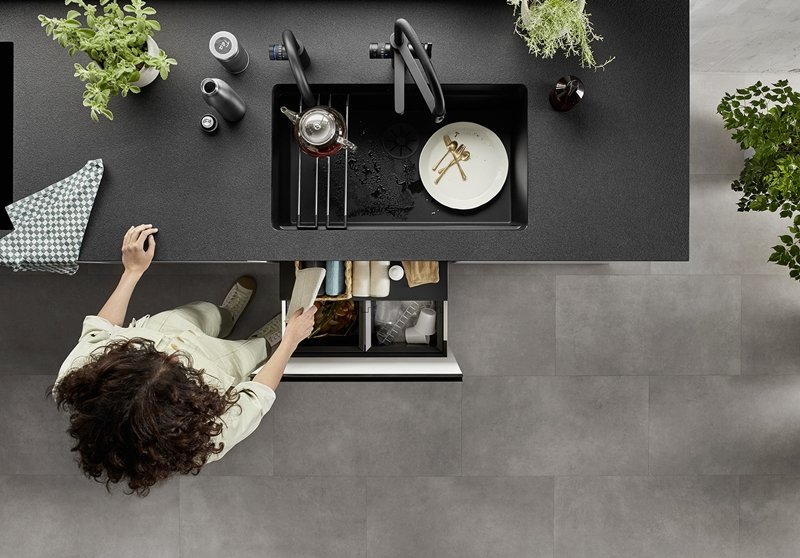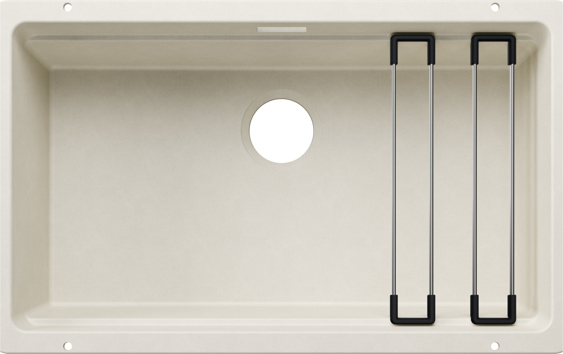 Keďže ide o poddoskový Blanco drez, pri upratovaní pracovnej dosky stačí zvyšky jednoducho zotrieť do vaničky bez zachytávania na okraji. Absencia odkvapu zároveň ponecháva viac voľnej plochy na doske – oceníte to najmä v kuchyniach, kde sa často pripravuje jedlo priamo vedľa drezu.
