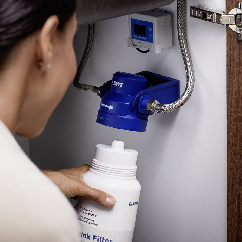 Tento filter na vodu na batériu je určený ako doplnok k kompatibilným kuchynským batériám Blanco pre riešenia s filtrovanou vodou. Montuje sa do vodnej cesty batérie (resp. do prívodu podľa typu zostavy), takže filtrovanú vodu odoberáte priamo cez batériu bez prenášania filtračných kanvíc.