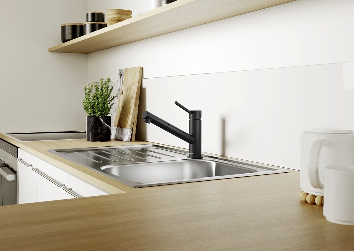 Blanco Kano S metalická batéria (čierna matná) je praktická kuchynská batéria s výsuvnou sprškou, určená na každodenné umývanie riadu aj oplachovanie potravín. Vďaka pákovému ovládaniu sa reguluje voda rýchlo a presne aj mokrou rukou. Matná čierna povrchová úprava sa hodí k moderným aj kontrastným kuchyniam a prirodzene ladí s väčšinou drezov.