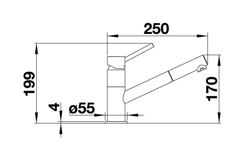 Výška batérie 199 mm poskytuje pohodlný priestor pod výtokom pri napúšťaní vyšších nádob a pri práci vo väčšom dreze. Ovládanie je pákové, čo v praxi znamená jednoduché nastavenie teploty a prietoku jedným pohybom – vhodné pri rýchlej práci pri varení.