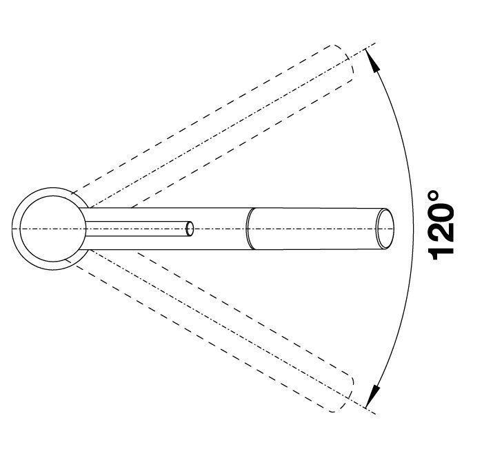 Výtok je otočný v rozsahu 120°, čo zlepšuje manipuláciu v dreze (napríklad pri prekladaní riadu alebo pri práci v širšej vaničke), pričom rozsah nie je zbytočne veľký – batéria sa tak lepšie drží v „pracovnom“ smere.