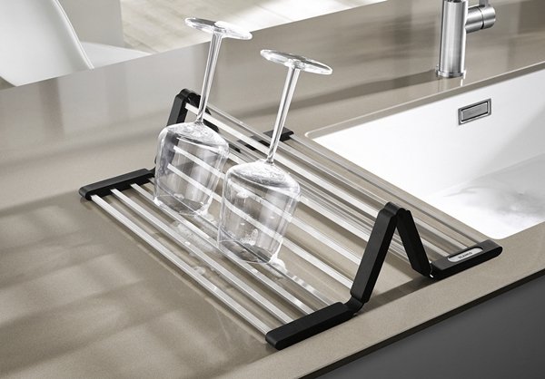 Mriežka je navrhnutá ako skladacia (roll-up/klapp) podložka, takže sa používa bez pevnej montáže: položí sa priamo na okraje drezu alebo na vhodnú plochu podľa možností konkrétneho Blanco drezu. V praxi to znamená rýchle nasadenie aj zloženie bez náradia a bez zásahu do kuchynskej linky.