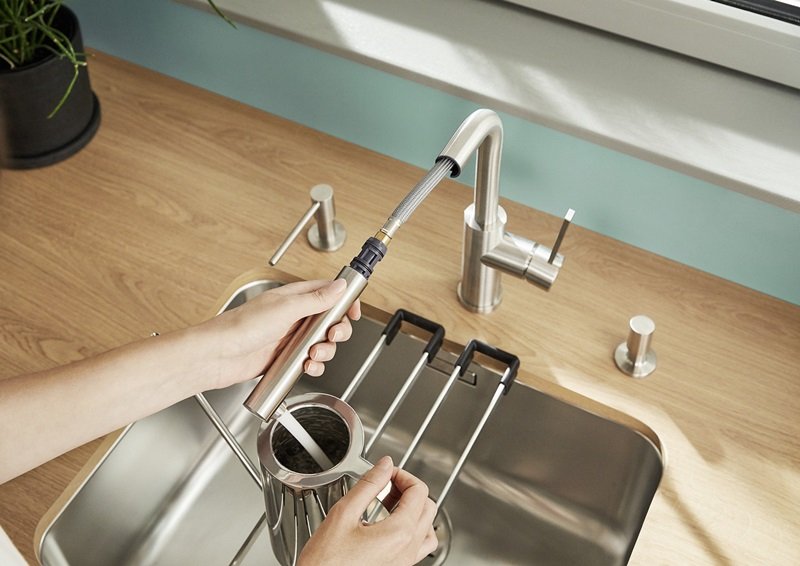 Pri umývaní väčších plechov, dosiek na krájanie alebo hrncov využijete kombináciu vyššieho výtoku a výsuvnej spršky – prúd vody si priblížite presne tam, kde ho potrebujete, bez zbytočného rozstrekovania po okolí.