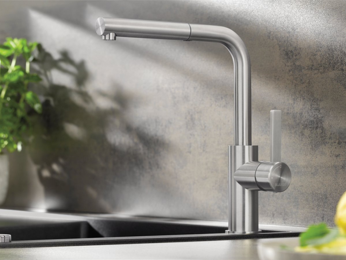 Blanco Lanora S Metalická batéria je moderná batéria do kuchyne s výsuvnou sprškou, určená na pohodlné každodenné umývanie riadu aj oplachovanie potravín. Vďaka vyššiemu ramienku a veľkému rozsahu otáčania sa hodí k jednokomorovým aj väčším drezom, kde často pracujete s plechmi alebo hrncami. Povrch v odtieni leštenej nereze pôsobí čisto a ľahko sa kombinuje s nerezovými aj kompozitnými drezmi.