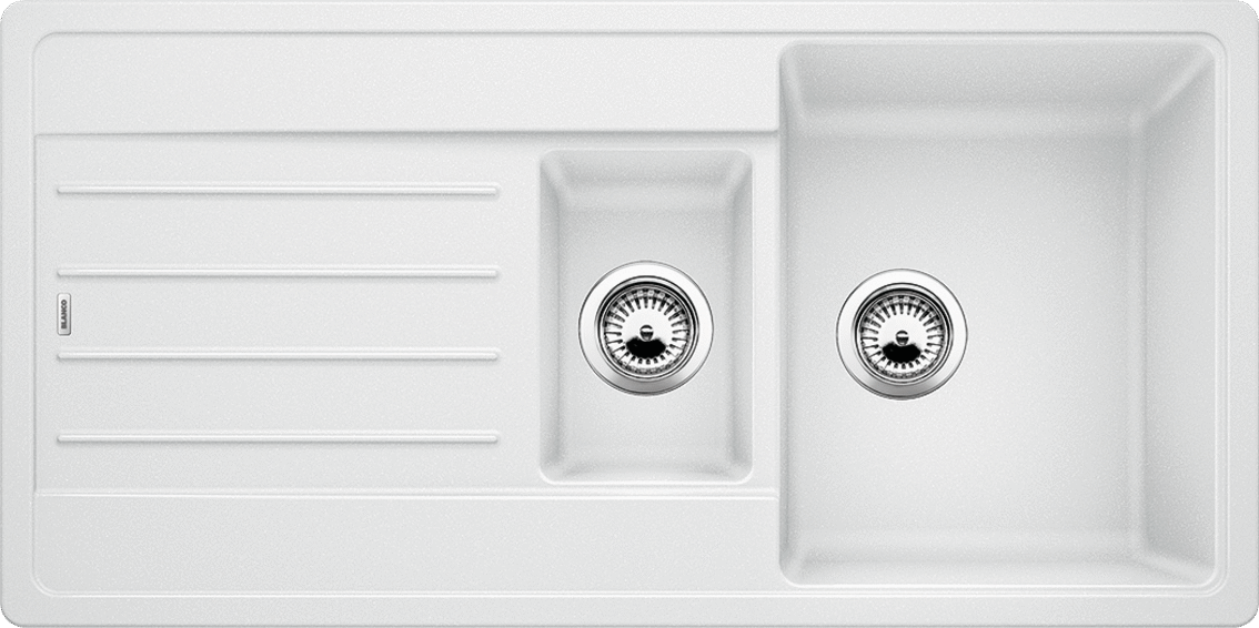 Na výber sú farebné varianty Čierna, Antracit, Biela, Biela soft, Káva a Sivá vulkán, vďaka čomu sa dá blanco drez ľahko zladiť s pracovnou doskou, obkladom aj spotrebičmi – od kontrastných tmavých kuchýň až po svetlé, minimalistické zostavy. Tento model patrí medzi obľúbené blanco drezy pre tých, ktorí chcú kombináciu priestrannej vaničky, doplnkovej časti a odkvapu v jednom celku.
