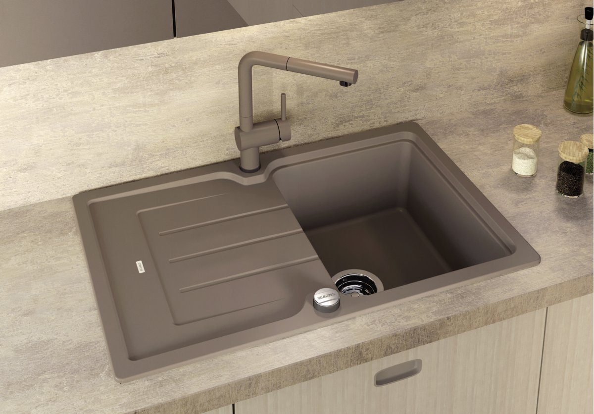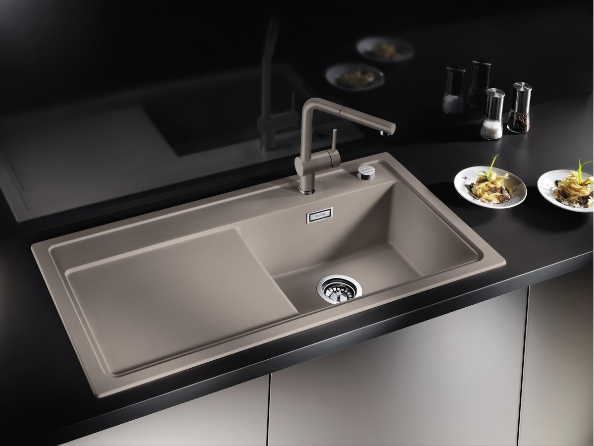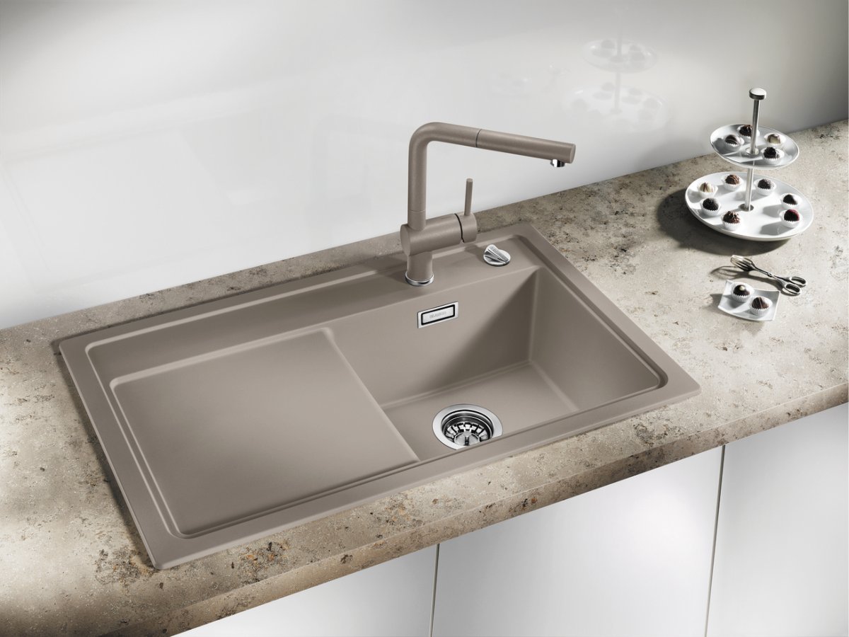 Blanco Linus S Granitová batéria je navrhnutá tak, aby vizuálne ladila s granitovými/kompozitnými drezmi Blanco a pôsobila jednotne v kuchynskej zóne. K dispozícii sú farebné prevedenia Čierna, Antracit, Biela, Biela soft, Sivá skala, Sivá vulkán, Tartufo, vďaka čomu je jednoduchšie zladiť batériu s odtieňom drezu aj pracovnej dosky – najmä ak vyberáte granitový drez v podobnej farbe.