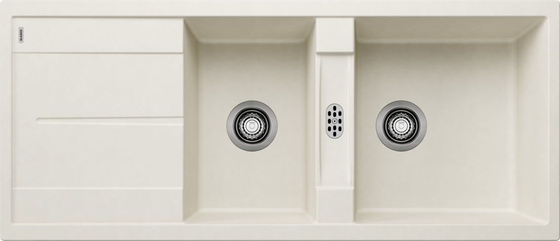 Model Metra 8 S patrí medzi Blanco drezy s výraznou pracovnou logikou: veľká vanička poskytuje komfort pri umývaní plechov, hrncov a rozmernejšieho riadu, zatiaľ čo odkvapová plocha uľahčuje odkladanie mokrých pohárov, príborov alebo opláchnutej zeleniny bez toho, aby ste museli zaberať miesto na pracovnej doske.