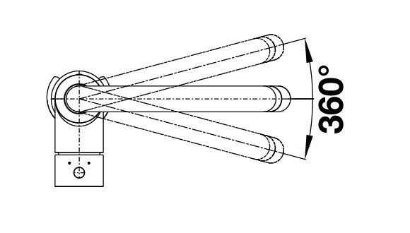 Vďaka otáčaniu o 360° sa batéria prirodzene prispôsobí práci pri väčšom dreze alebo dvojdreze – výtok jednoducho presuniete tam, kde práve potrebujete vodu, bez obmedzenia rozsahom pohybu.