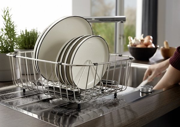 Pri umývaní riadu môžete do koša odkladať poháre, šálky alebo príbor tak, aby voda odkvapkala priamo do drezu. Je to pohodlné najmä vtedy, keď nechcete mať na pracovnej doske samostatný odkvapkávač.