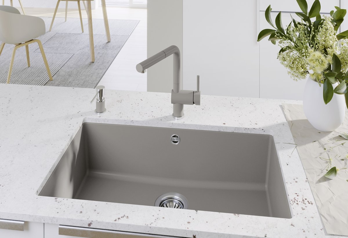 Drez je vyrobený zo SILGRANIT-u – ide o kompozitný materiál určený na každodenné používanie v kuchyni. V praxi to znamená pevný, stabilný povrch s príjemným „kamenným“ dojmom, ktorý je vhodný na bežnú záťaž pri umývaní riadu a príprave jedla; pri pravidelnej údržbe sa udržiava jednoducho.