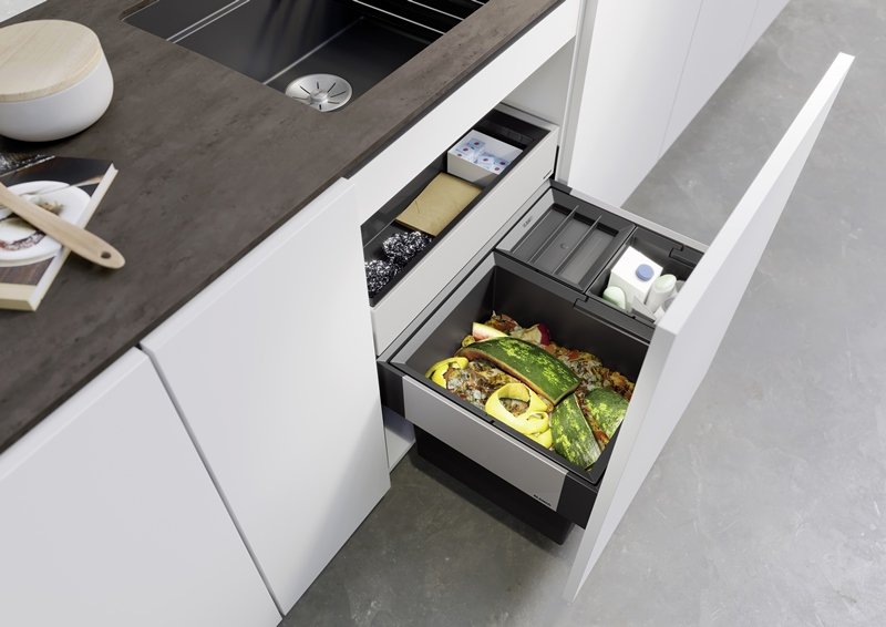 Keďže ide o smetné koše do kuchyne montované na dvierka, triedenie máte vždy „po ruke“ a zároveň ostáva pracovná plocha aj podlaha voľná.