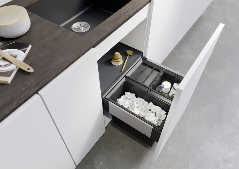 Pri príprave jedla oceníte, že po otvorení dvierok máte triedenie hneď poruke: do menších nádob môžete priebežne odkladať obaly alebo bio odpad, kým väčší kôš zvládne bežný komunálny odpad. Keďže sú nádoby oddelené, odpad sa nemieša a v skrinke je prehľadnejšie.