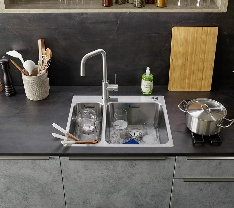 Keďže drez nemá odkvapovú plochu, oceníte ho najmä tam, kde je prioritou zachovať pracovnú dosku. PushControl ovládanie výpuste zároveň zjednoduší napúšťanie vody na namáčanie – odtok ovládate pohodlne bez kontaktu s vodou v dreze.