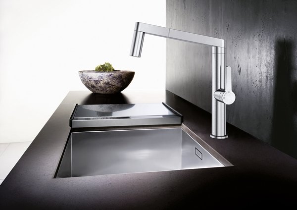 Dizajn príslušenstva je navrhnutý tak, aby prirodzene doplnil pracovnú zónu pri dreze a nepôsobil rušivo vedľa nerezových spotrebičov či batérií.