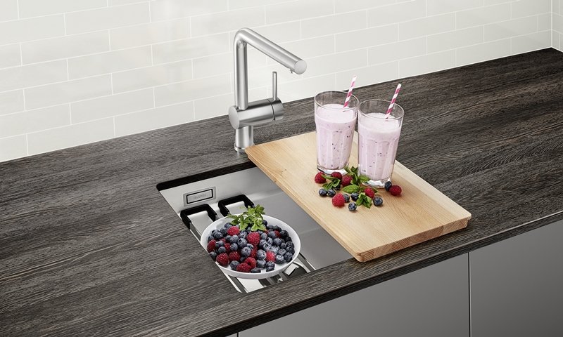 Pri príprave zeleniny alebo mäsa položíte dosku na etážové uloženie v dreze a krájate priamo nad vaničkou. Oplachovanie surovín, odkladanie nakrájaných kúskov aj zhrnutie zvyškov do drezu je rýchlejšie a bez zbytočného neporiadku na pracovnej doske.