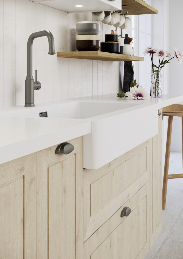Drez je určený na montáž na spodnú skrinku (UF – na skrinku), čo v praxi znamená, že drez tvorí výraznejší prvok na pracovnej doske a zároveň sa ľahko napája na bežné kuchynské rozvody. Počítajte s minimálnou šírkou spodnej skrinky 90 cm – je to dôležité pre pohodlné osadenie drezu, sifónu a dostatok miesta v skrinke pod ním.
