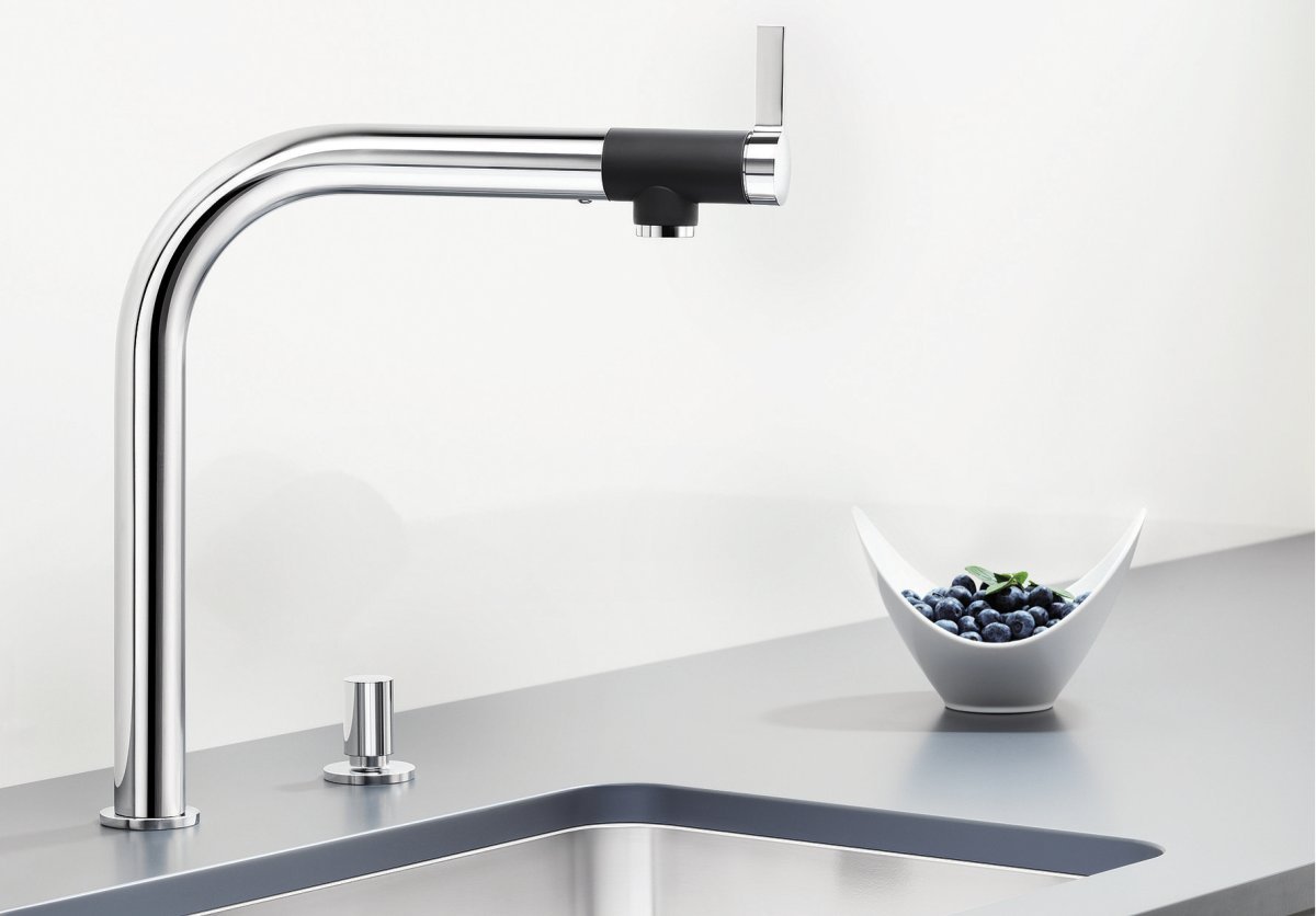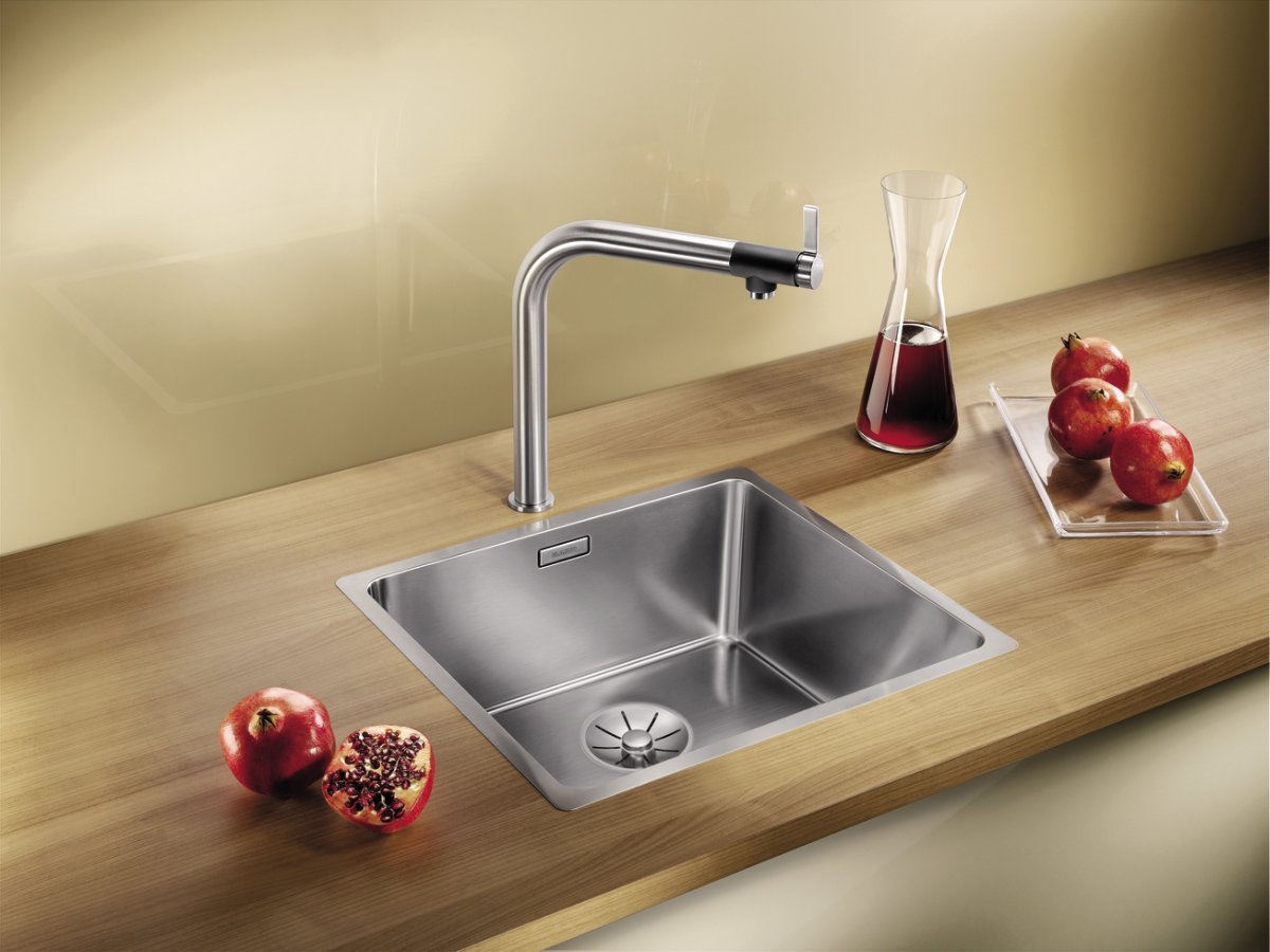 Tvar batérie je navrhnutý tak, aby poskytoval praktickú pracovnú výšku pri dreze a zároveň nepôsobil ťažkopádne. V kombinácii s drezmi Blanco vytvára vizuálne jednotné riešenie, najmä ak ladíte aj ostatné kuchynské prvky v kovových tónoch.