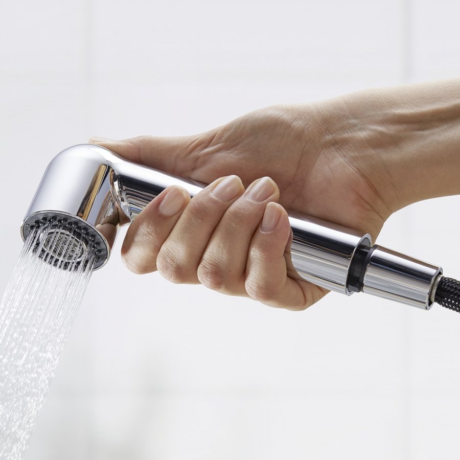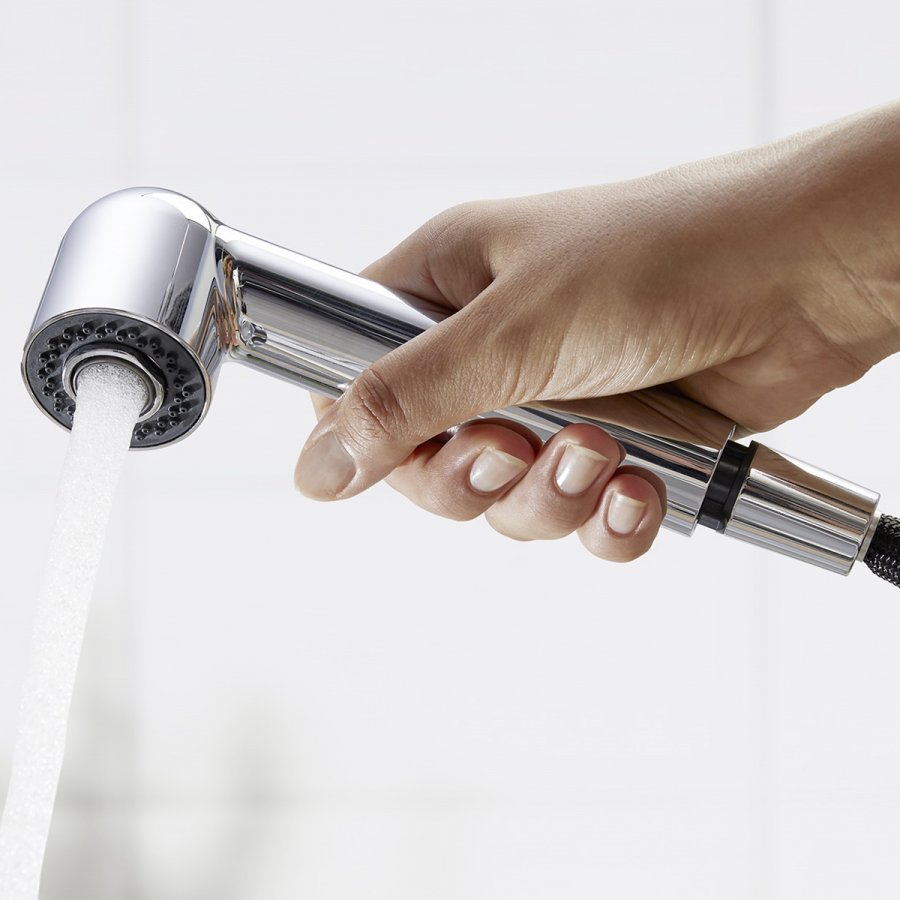 Súčasťou batérie sú prepojovacie hadice s dĺžkou 55 cm, ktoré uľahčujú napojenie aj v hlbších skrinkách alebo pri menej prístupných rohových ventiloch. Batéria má integrovanú výsuvnú spršku, vďaka ktorej sa dostanete aj do okrajov drezu a pohodlnejšie opláchnete plechy, hrnce či suroviny.