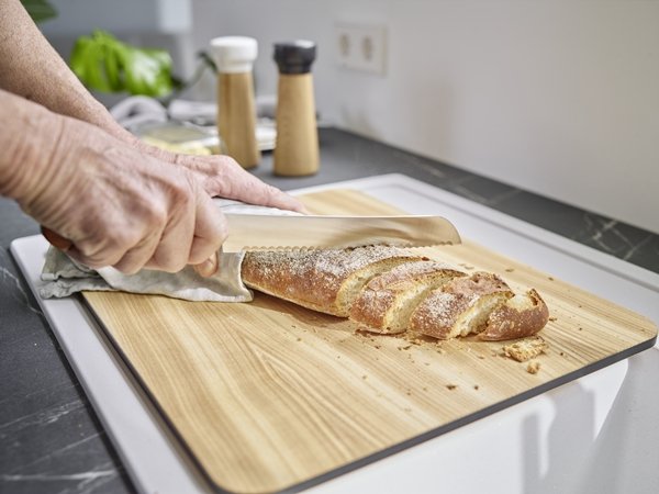 Materiál drevo je príjemný na dotyk a šetrnejší k ostriu nožov než tvrdé povrchy. Pri každodennom používaní oceníte aj to, že drevená doska sa dá rýchlo odložiť a drez je opäť plne voľný na umývanie väčších hrncov.