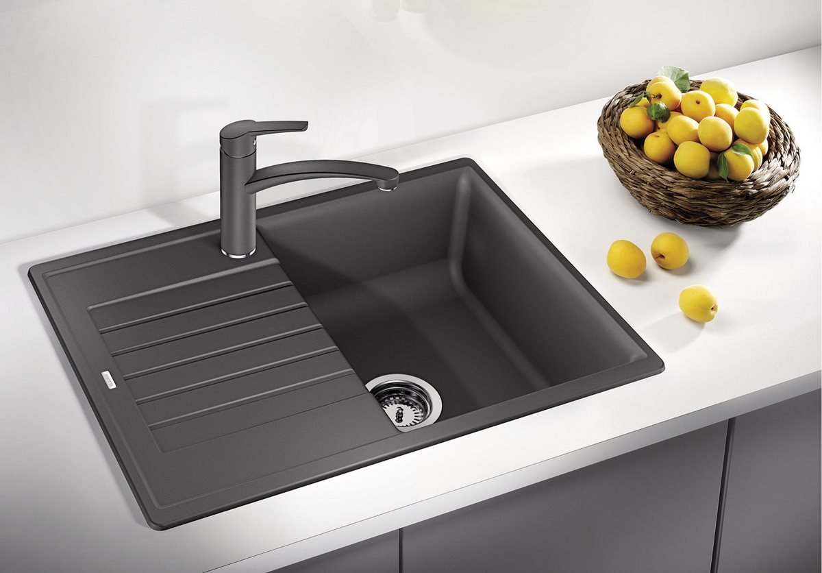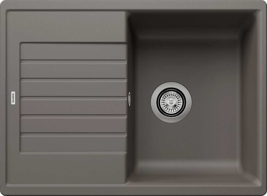 Drez je vyrobený z BLANCO SILGRANIT – ide o kompozitný materiál určený na každodenné používanie v kuchyni. V praxi oceníte jeho pevný povrch, príjemný matný vzhľad a jednoduchú údržbu pri bežnom znečistení (voda, zvyšky jedla, bežné kuchynské nečistoty).