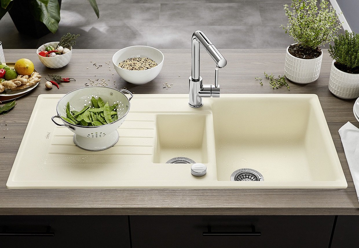 Drez je vyrobený z SILGRANIT-u, teda kompozitného materiálu určeného na každodenné používanie v kuchyni. V bežnej prevádzke to znamená pevný, stabilný povrch, ktorý sa udržiava jednoducho pri umývaní riadu aj pri práci so surovinami; zároveň pôsobí prirodzene a dobre ladí s modernými aj klasickými kuchyňami.