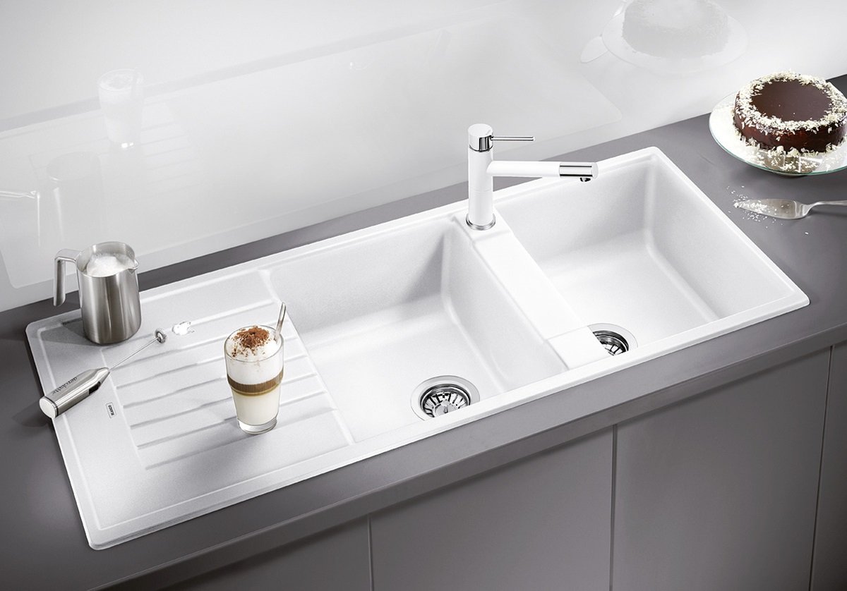 Blanco Zia 8 S Granitový drez je priestranný granitový dvojdrez s odkvapom určený pre kuchyne, kde sa často varí a umýva viac riadu naraz. Dve rovnako hlboké vaničky uľahčia paralelnú prácu (napr. umývanie a oplachovanie), pričom odkvapová plocha pridá miesto na odkladanie mokrého riadu. Vďaka univerzálnej orientácii sa dá prakticky prispôsobiť dispozícii pracovnej dosky.
